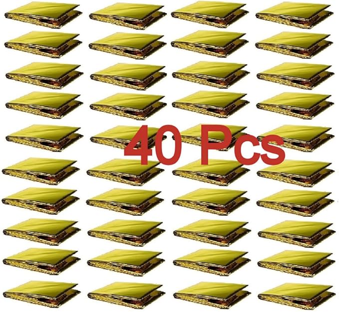 GALAXYLENSE Emergency Mylar Thermal Blanket for Survival First Aid Kits Army Outdoors Hiking Camping Bug Out Trauma Desert All Weather Condition Protection (40 Packs Gold)