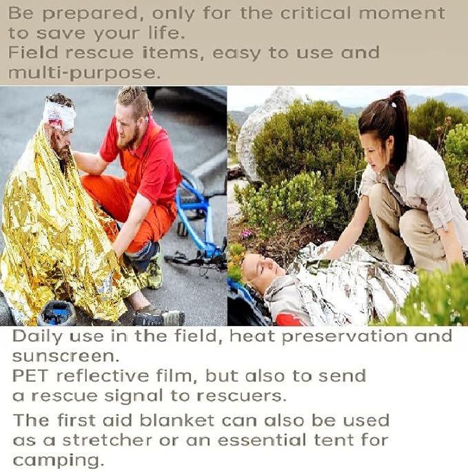 - ✅ PERFECT EMERGENCY FIRST AID MYLAR THERMAL BLANKET : High-quality comprehensive emergency survival first aid blanket. It is the ideal gift for men, fathers, women, wife, family, friends ,office, school,...
