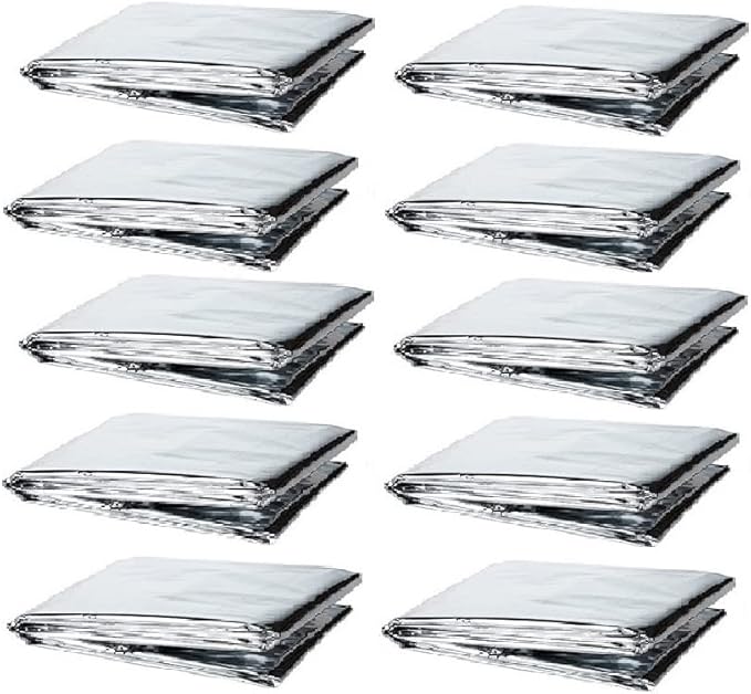 GALAXYLENSE Emergency Mylar Thermal Blanket for Survival First Aid Kits Army Outdoors Hiking Camping Bug Out Trauma Desert All Weather Condition Protection (10 Packs Silver)