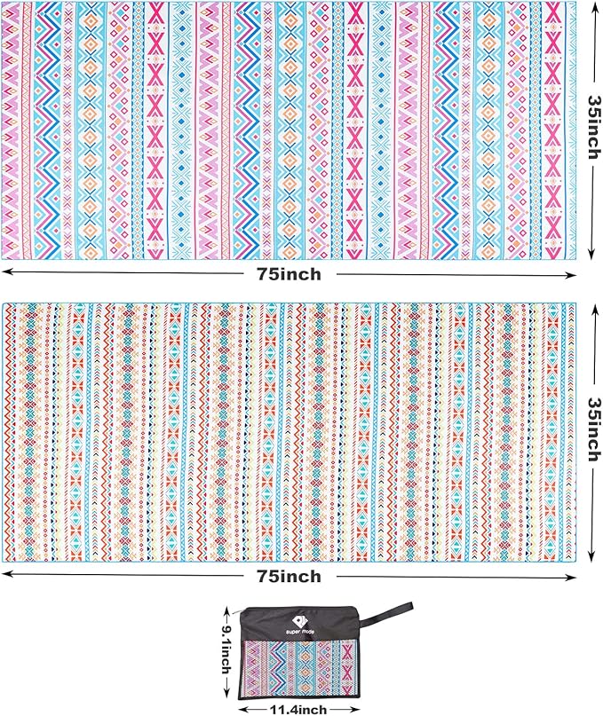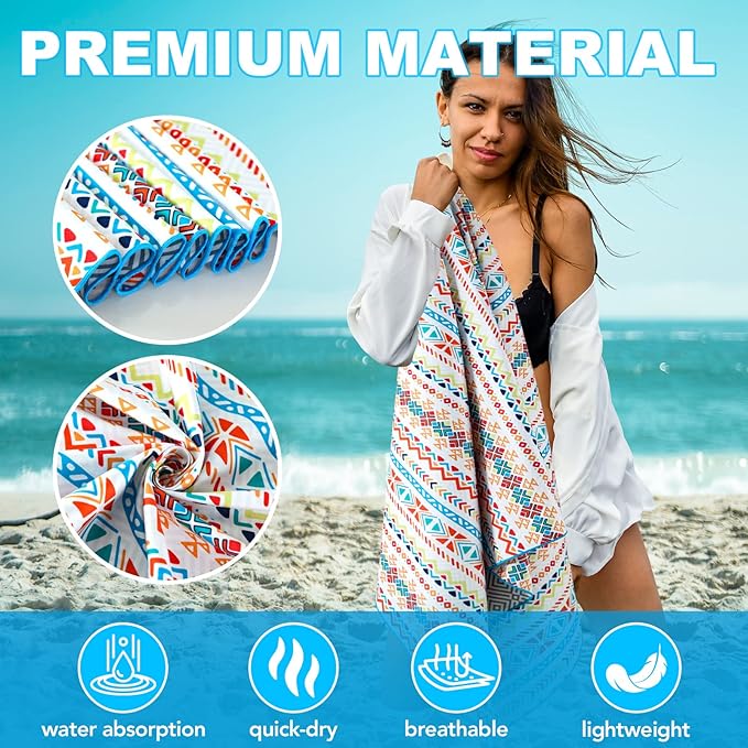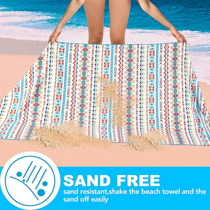 - 【Sand Free】The beach towel can be directly covered on the sand or grass, when not in use you can quick shake off the sand due to the smoother surface. What’s more, the microfiber beach towel is also soft and comfortable to touch.