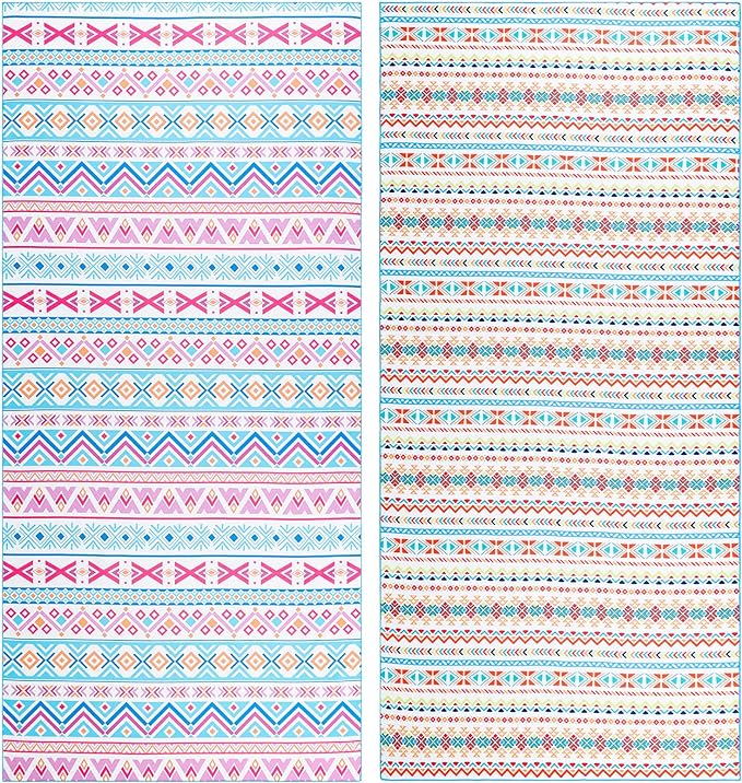 - 【Multi-Purpose Beach Towel 】The beach towel set has an unfolded size of 75"x35", which is ideal for beach recreation, swimming pools, spas, saunas, gyms, yoga, travel, camping, and picnics. It is also ideal as indoor swimming towels.