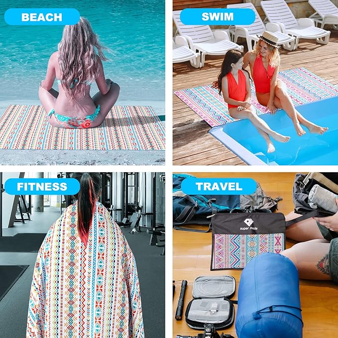 - 【Super Absorbent & Quick Dry】The large camping towel is made of microfiber material, which can absorb up to 7 times its weight.Fast Quick drying – 3 times faster than cotton. That's why it works perfectly as beach & travel towel and why it dries off so fast.