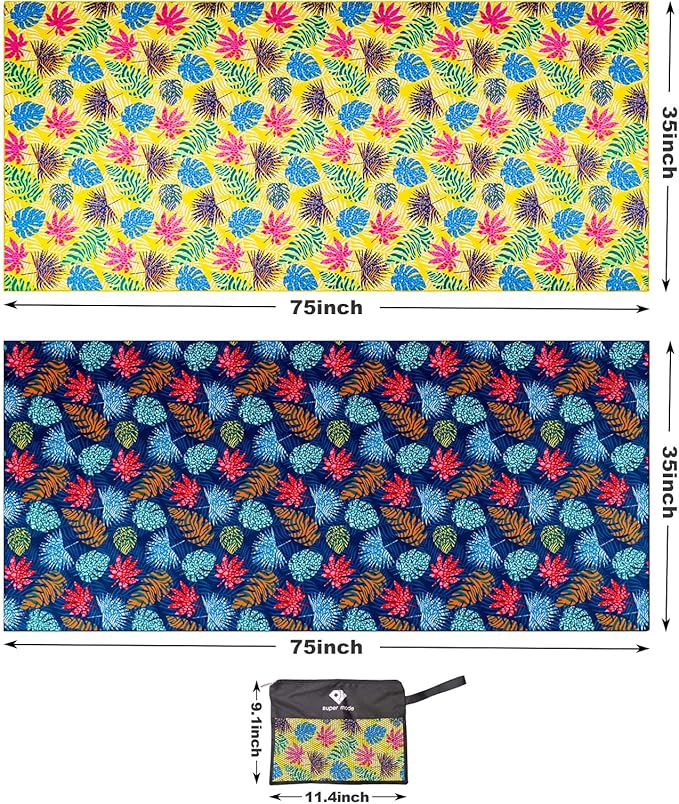 - 【Sand Free】The beach towel can be directly covered on the sand or grass, when not in use you can quick shake off the sand due to the smoother surface. What’s more, the microfiber beach towel is also soft and comfortable to touch.