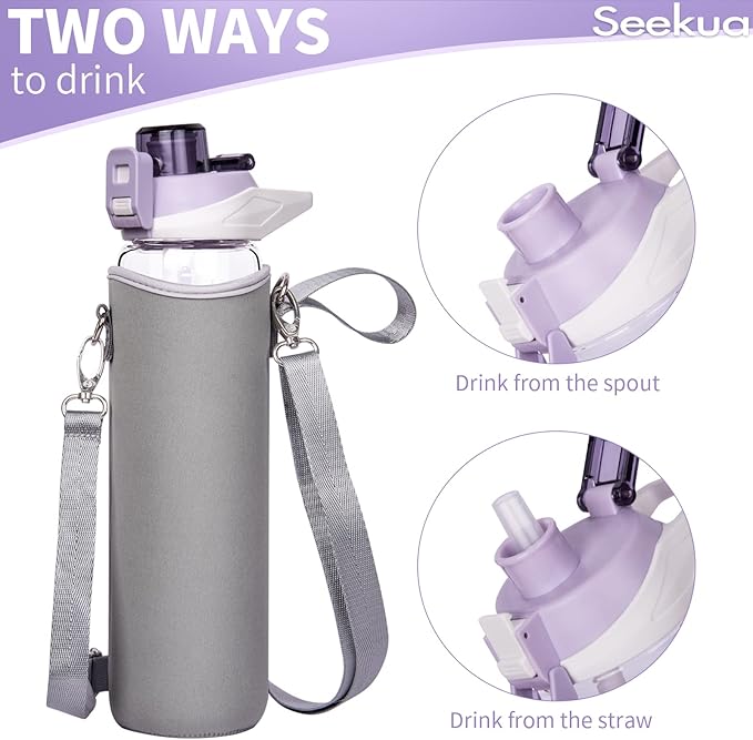- EASY TO CARRY - The sports bottle comes with a silicone boot and a neoprene sleeve which can supply impact protection. There's a detachable shoulder strap for hands-free carrying. Perfect for office, travel, hiking, bike, gym, fitness, or outdoor activities.