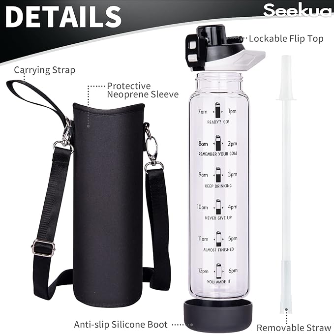 - MOTIVATION & TIME MARKER - Time markerings and motivational quotes on the drinking bottles, reminding you to stay hydrated and helping boost your daily water intake.