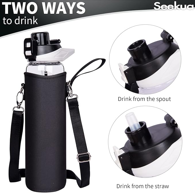 - EASY TO CARRY - The sports bottle comes with a silicone boot and a neoprene sleeve which can supply impact protection. There's a detachable shoulder strap for hands-free carrying. Perfect for office, travel, hiking, bike, gym, fitness, or outdoor activities.