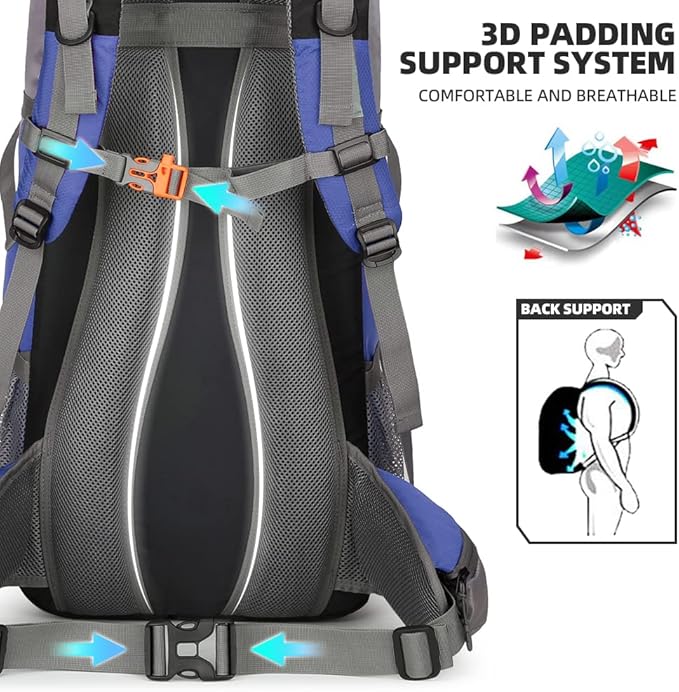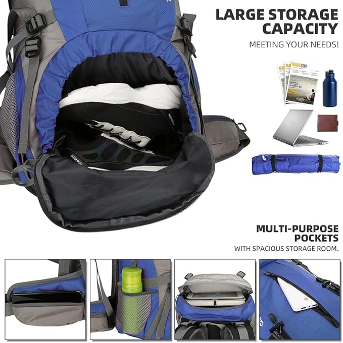 King'sGuard 70L Hiking Backpack Large Lightweight Waterproof Camping Backpack Travel Backpacking Backpack Daypack with Rain Cover -Frameless (Deep Blue)