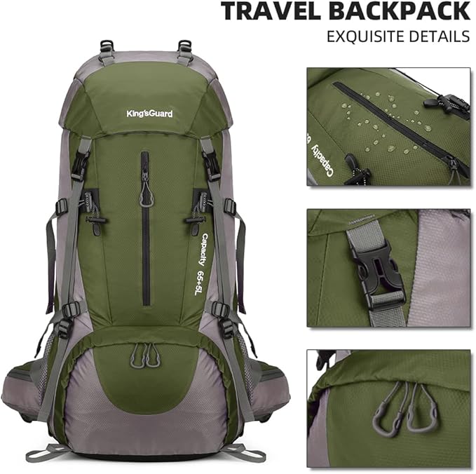 - 【After-sales Guarantee】The kings guard 70l hiking camping backpack with rain cover is of high quality, sturdy and thick. The kings guard 70l hiking backpack is an ideal choice for day trips, weekend getaways, and even longer journeys.【 ONE YEAR QUALITY SUPPORT 】