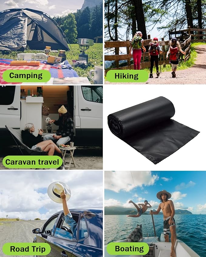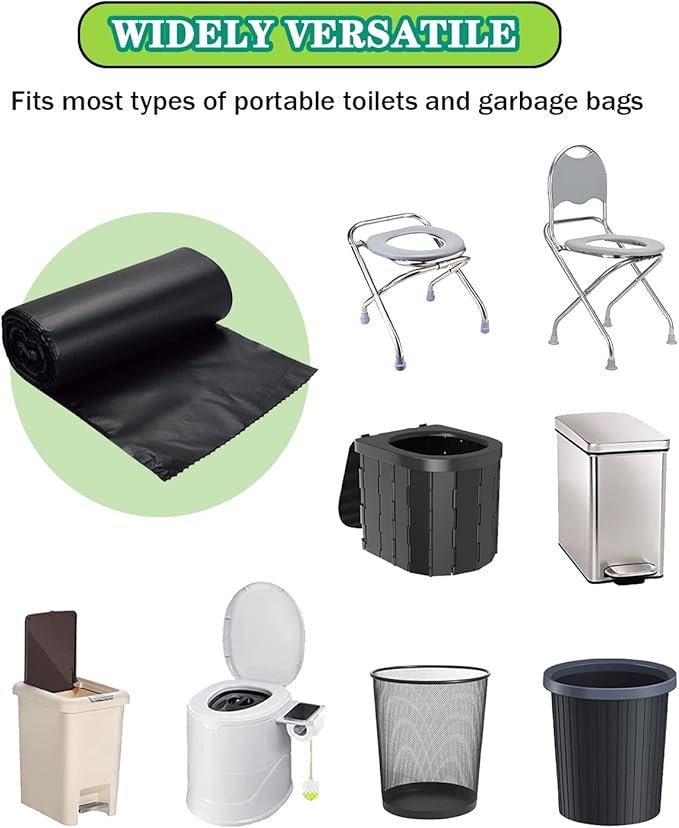 - Wide Range of Uses🚽: Our Potty bags for portable toilets are black and opaque, it can hide the contents well without being noticed. Perfect for camping, traveling, boating, driving and other outdoor activities, but also suitable for indoor spaces such as home, kitchen, bathroom, garden, etc.