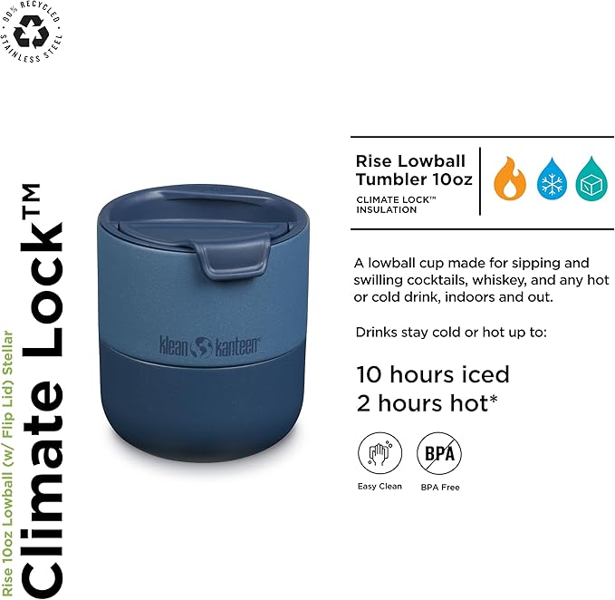 Klean Kanteen Rise 10oz Lowball - Stainless Steel Tumbler with Flip Lid - Stellar