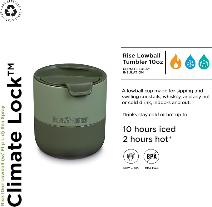 Klean Kanteen Rise 10oz Lowball - Stainless Steel Tumbler with Flip Lid - Sea Spray