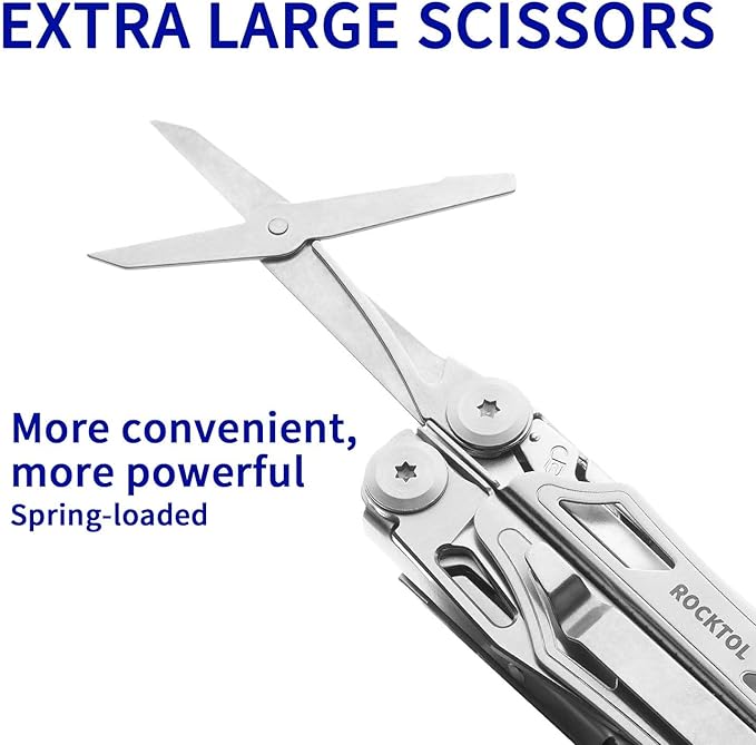 - Extra Large Scissors: The scissors are specially designed in size and construction. They are larger than most built-in scissors of a multi-tool, together with an extra solid construction, providing you with a powerful and comfortable experience