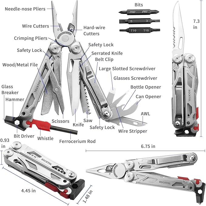 Multitool, 22-in-1 Multi-tool Pliers with Fire Starter, Emergency Whistle, Glass Breaker, Safety Locking and Nylon Sheath for Survival, Camping, multitool for men