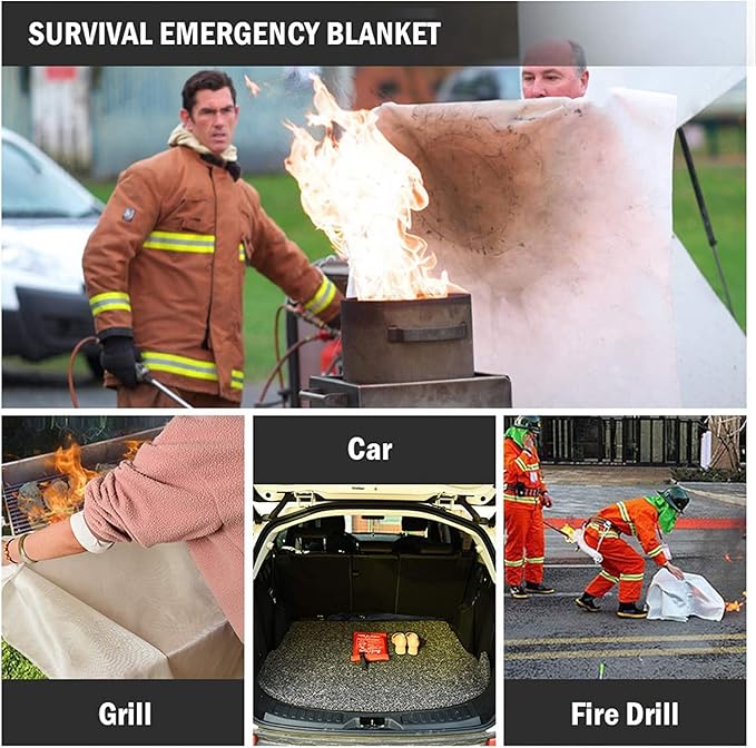 - 𝐒𝐮𝐫𝐯𝐢𝐯𝐚𝐥 𝐄𝐦𝐞𝐫𝐠𝐞𝐧𝐜𝐲 𝐁𝐥𝐚𝐧𝐤𝐞𝐭: The fire blanket is designed to extinguish small-scale fires and can also be used as a safety cover to escape large-scale fires. A must have survival kit for your home and car. We sincerely hope you never need it.