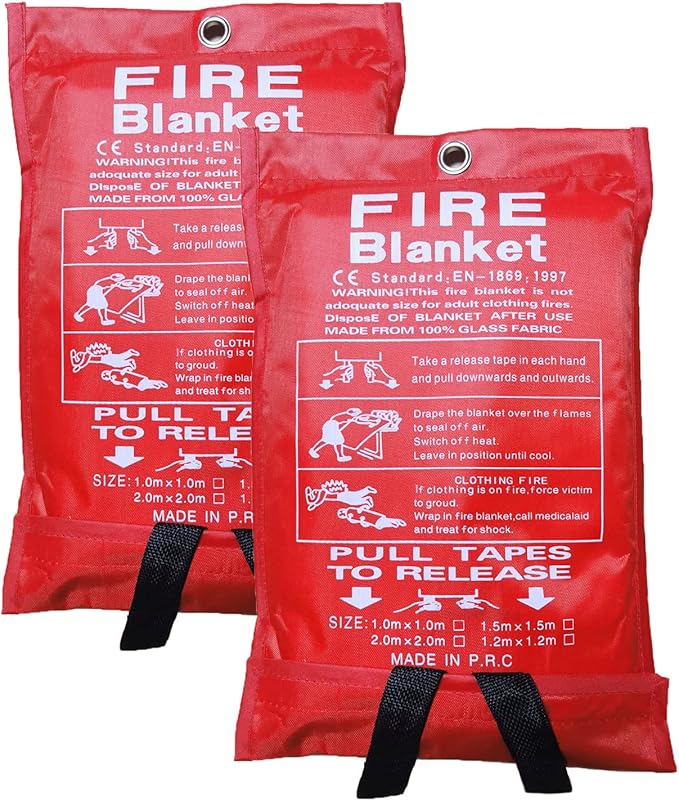 Fire Blanket for Emergency Survival, 39 x 39 inches Reusable Fiberglass Fire Emergency Blanket Fire Shelter Safety Cover for Kitchen, Car, Camping, Grilling, Office, Warehouse (2 Pack)