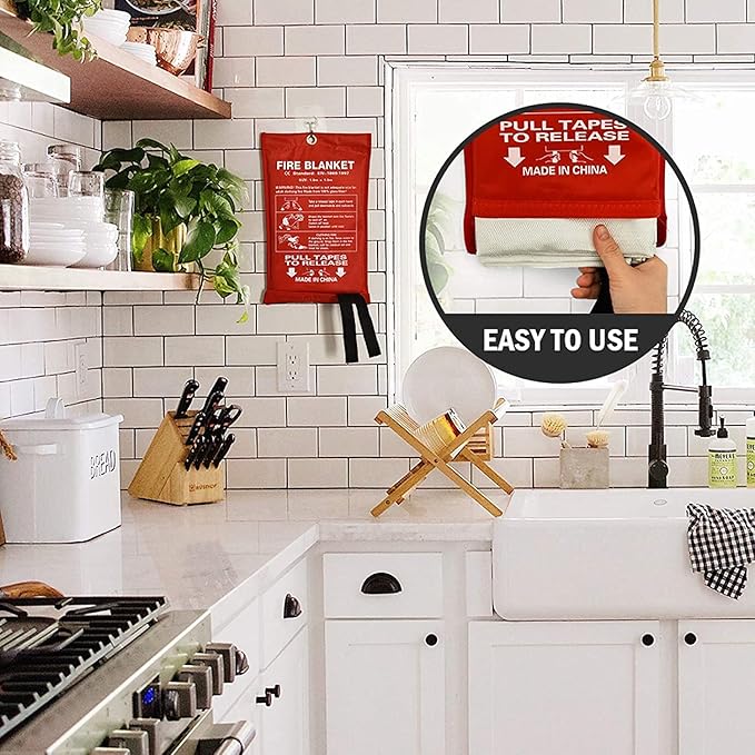 - 𝐇𝐢𝐠𝐡-𝐪𝐮𝐚𝐥𝐢𝐭𝐲 𝐌𝐚𝐭𝐞𝐫𝐢𝐚𝐥𝐬: Fire emergency blankets are made of glass fiber cloth and can withstand temperatures of up to 1022 °F (550 °C). It extinguishes fires by isolating the air, making it suitable for both liquid and grease fires.