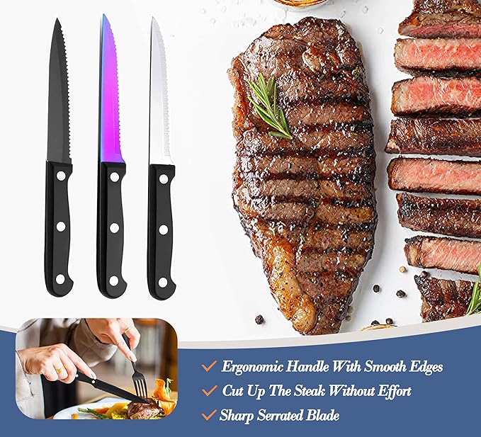 - 《Multi-function combination》Travel Gold Silverware set with case- includes knife,a special included sheathed steak knife,fork,spoon with travel chopsticks, easy-carry zipper-bag.two mini spice jars and a portable straw set ( a telescopic straw and a telescopic straw brush.)