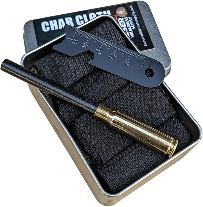Charcloth Char Cloth Hand Made in USA Fire Starter Kit Ferro Rod Striker for Bushcraft Camping Survival Hunting Outdoors