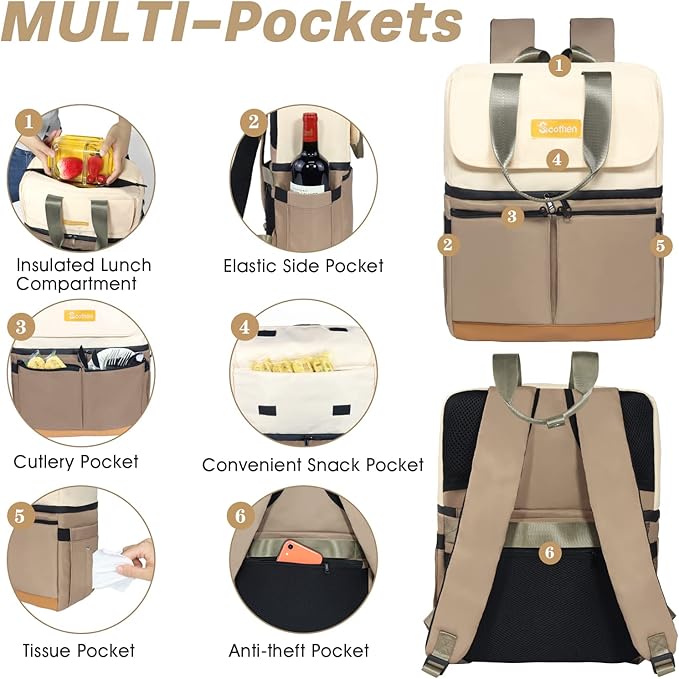 - 🍱Hot & Cold Separation Design: Our cooler backpack with double decker is design for women. A bottom compartment for cold, fresh contents that can also house ice packs, and an upper compartment for warm, dry goods and lunch. We recommend storing hot and cold foods and drinks separately for better results. It is a must-have backpack cooler for women hiking! It can also be used as a breastmilk cooler bag to keep your drinks 🍹 cold and keep your breast bottle 🍼 warm!