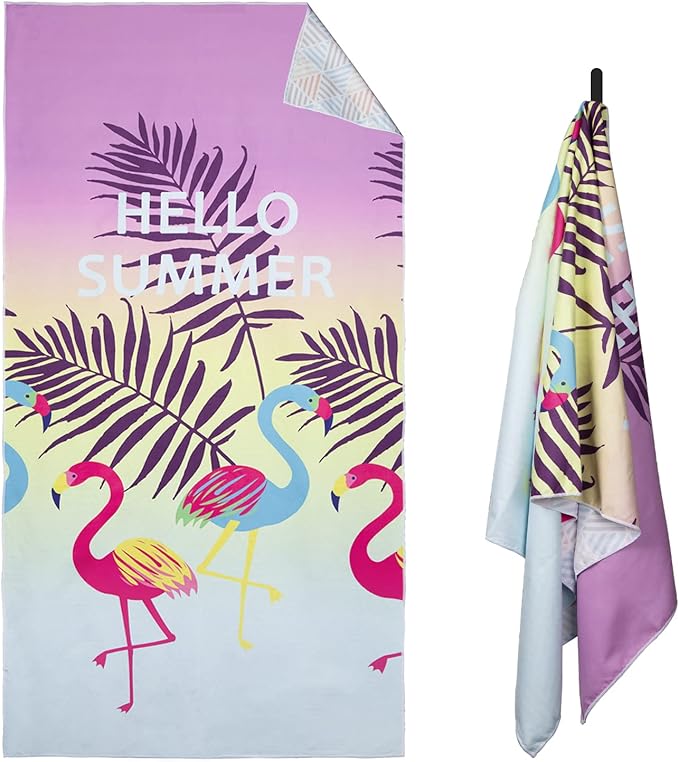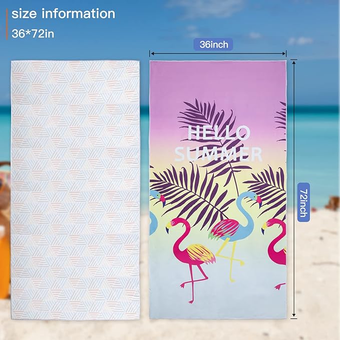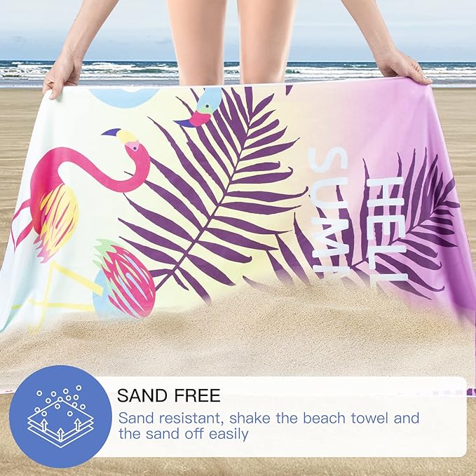 Airensky Microfiber Sand Free Beach Towel 72"x36",Extra Large Lightweight Super Absorbent Thin Fast Drying Towels for Swimming Exercise Pool Bathing Camping Girls Women Adults(Flamingo)