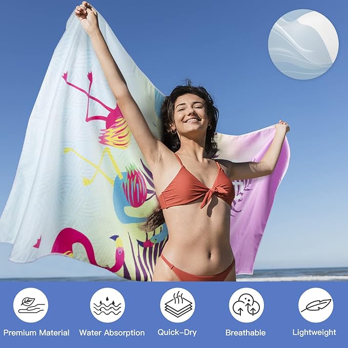 - Multi-Purpose Towel:Soft as baby's skin, this beach towel can be used as a beach blanket, swimming pool towel, bath towel, and even a picnic blanket, making it perfect for beaches, swimming pools, spas, saunas, hotels, yoga, exercise, travel, bathrooms, camping, hiking, and picnics, both indoors and outdoors; The fabric of this beach towel is sun resistant and will not fade easily after multiple washes