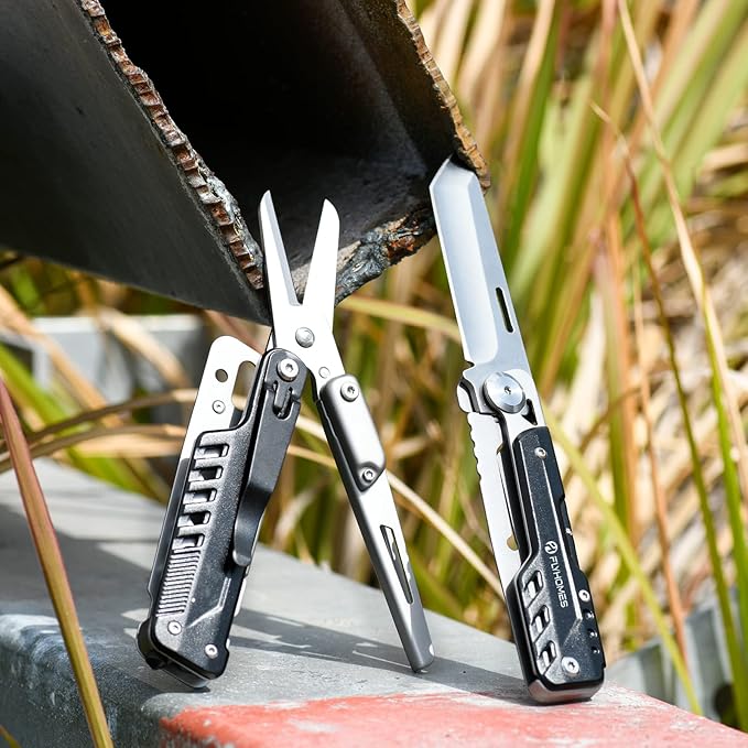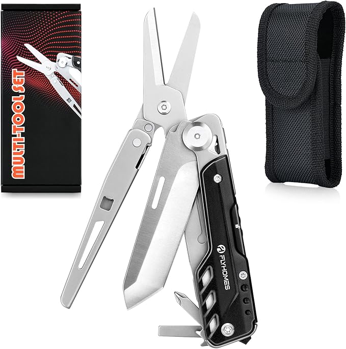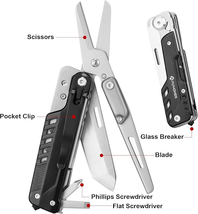FLYHOMES Multitool Knife, 6-in-1 Multitool with Scissors and Pocket Clip, Gift for Men, Professional Multi-tool for Camping, Survival Tools, and Outdoor Adventures
