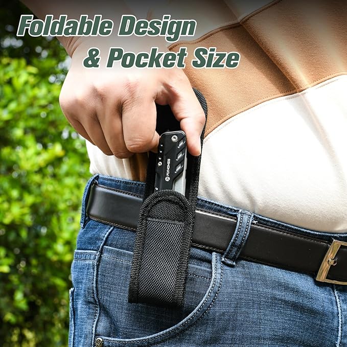- Easy to Carry: The folding utility tool is designed for easy storage or pocket carry, featuring a compact size and foldable design. Additionally, it comes with a nylon pouch that can be securely attached to your belt loop, providing convenient access while leaving little to no space occupied.