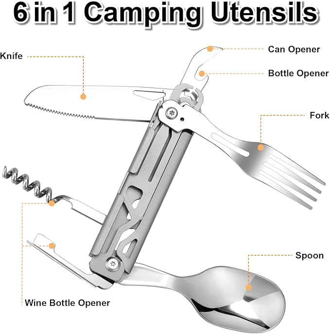 - Versatile Six-in-One Design: This utensil set boasts a six-in-one multifunctional design, including detachable forks, spoons, knives, and even a bottle opener. It fulfills all your outdoor dining needs in a single, convenient package.