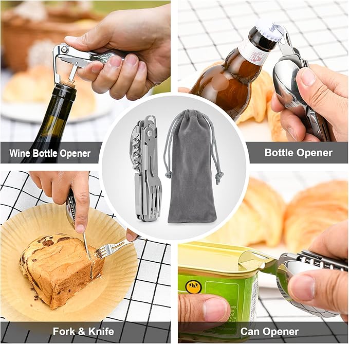 - Included Components : Knife, Can Opener, Bottle Opener, Fork, Spoon, Wine Bottle opener
