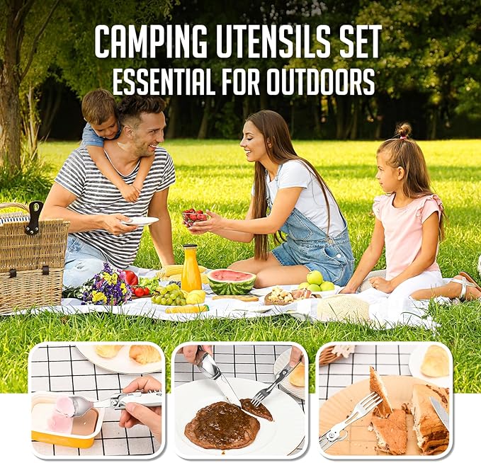 - Sturdy and Reliable for Safe Use: Made from durable 420 stainless steel, these utensils ensure stability and durability. Enjoy peace of mind while dining outdoors with your family, knowing that these utensils provide a healthy and safe dining experience.