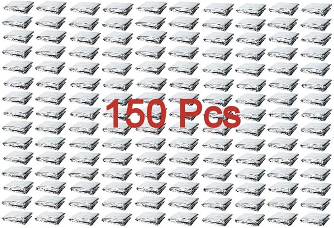 GALAXYLENSE Emergency Mylar Thermal Blanket for Survival First Aid Kits Army Outdoors Hiking Camping Bug Out Trauma Desert All Weather Condition Protection (150 Packs Silver)