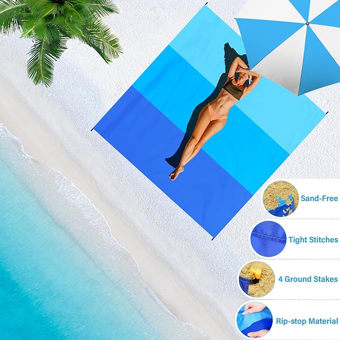 - 🏖️Beach Blanket Waterproof Sandproof:78''×81''size beach blanket,suit for 1-5 adults in total,odorless,made by parachute fabric.Rip-stop 210T polyester,light weight and small after folding.12 oz easy to carry,small and mighty!