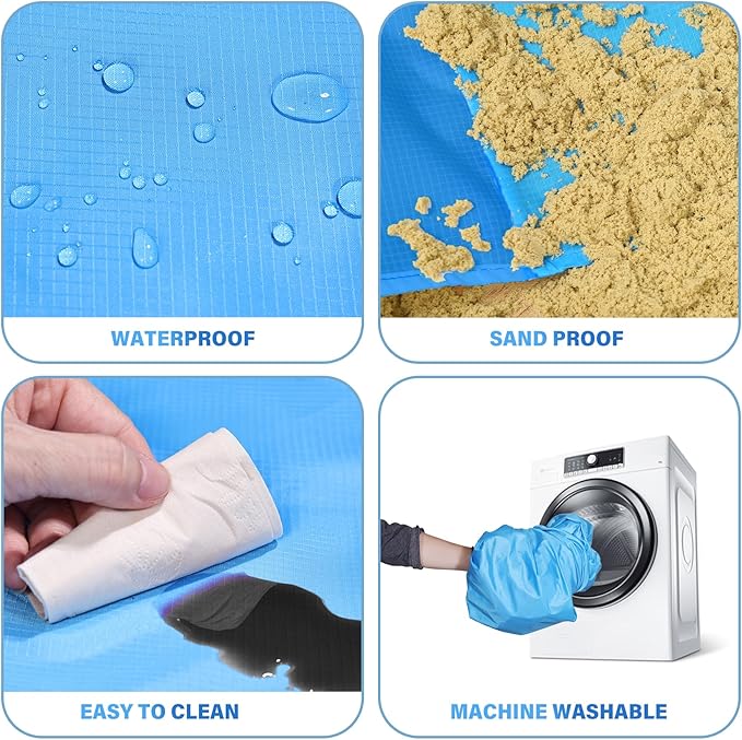 - 🏖️Beach Blanket Waterproof Sandproof:78''×81''size beach blanket,suit for 1-5 adults in total,odorless,made by parachute fabric.Rip-stop 210T polyester,light weight and small after folding.12 oz easy to carry,small and mighty!