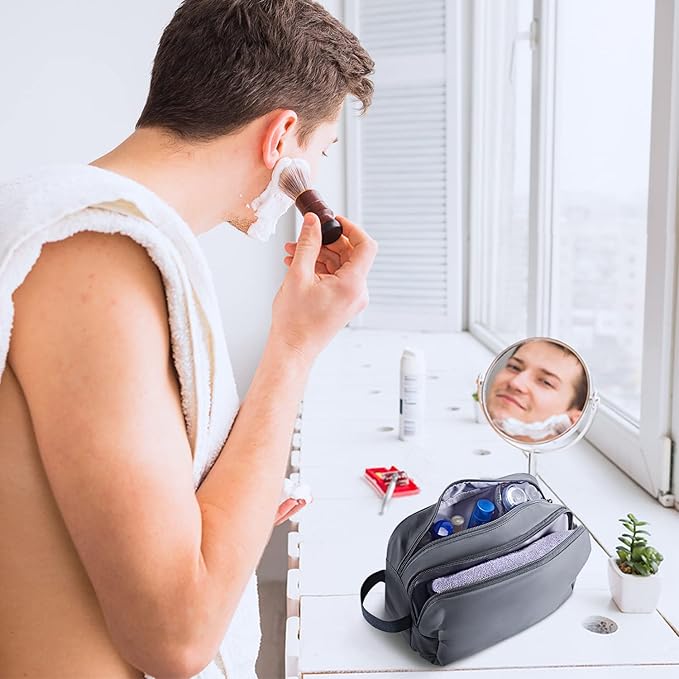 - ๐๐ฎ๐ฅ๐ญ๐ข-๐๐ฎ๐ง๐๐ญ๐ข๐จ๐ง๐๐ฅ ๐๐๐ฌ๐ข๐ ๐ง: Travel toiletry bag made of water-resistant material, easy to wipe clean and protects the shaver from splashed water. Spacious main compartment with elastic straps hold bottles upright. Multiple pockets inside, can hold all your toiletries and shaving supplies organized