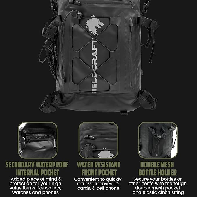 FIELDCRAFT Wayfarer Waterproof Rolltop Backpack Dry Bag for Outdoor, Water Sports, Kayaking, Boating, Camping, Hiking, Scuba Diving, Fishing, Beach, and Lake Activities