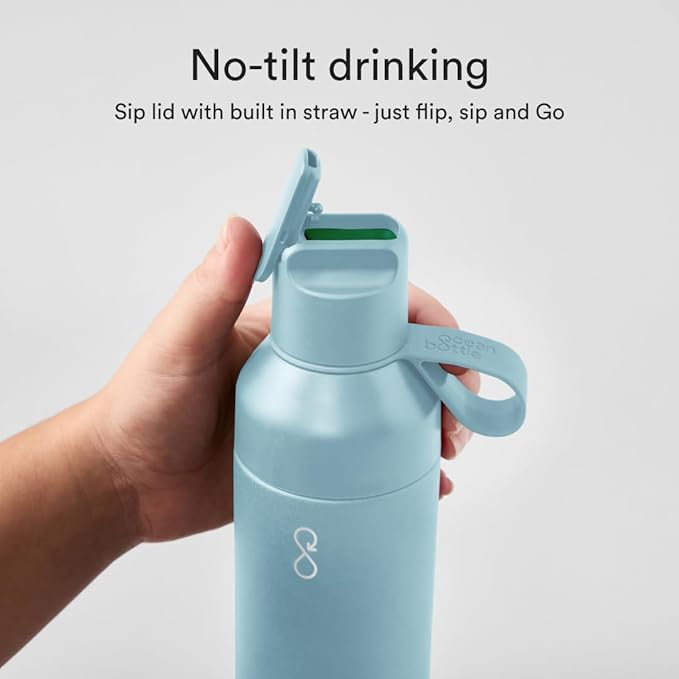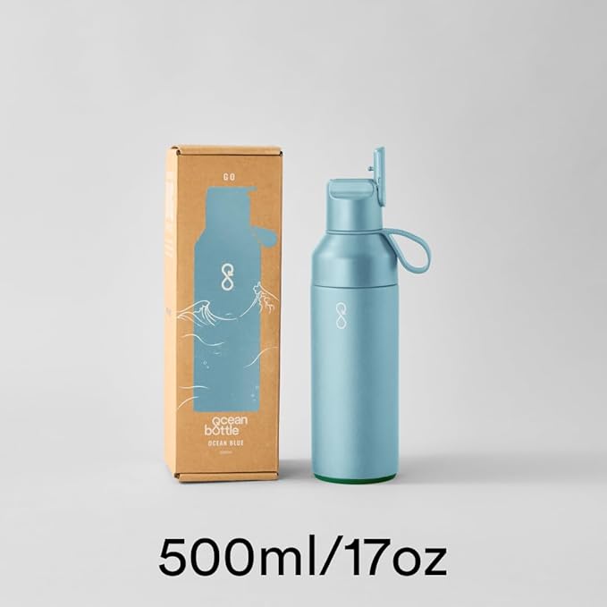 - OCEAN BOTTLE: Our Go Water Bottle is designed to accompany you at home and beyond. Keep your drink ice cold regardless of outside temperature. A double wall also means there is no “sweat” feeling from condensation on the outside of the bottle