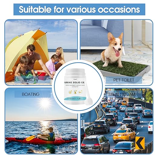 - ODOR CONTROL - Toilet urine powder quickly absorbs and blocks smelly waste and urine odors, gels them away, and adds a light lemon scent to keep your emergency toilet fresh. Say goodbye to unpleasant smells and enjoy a pleasant outdoor experience with urine odor eliminator!