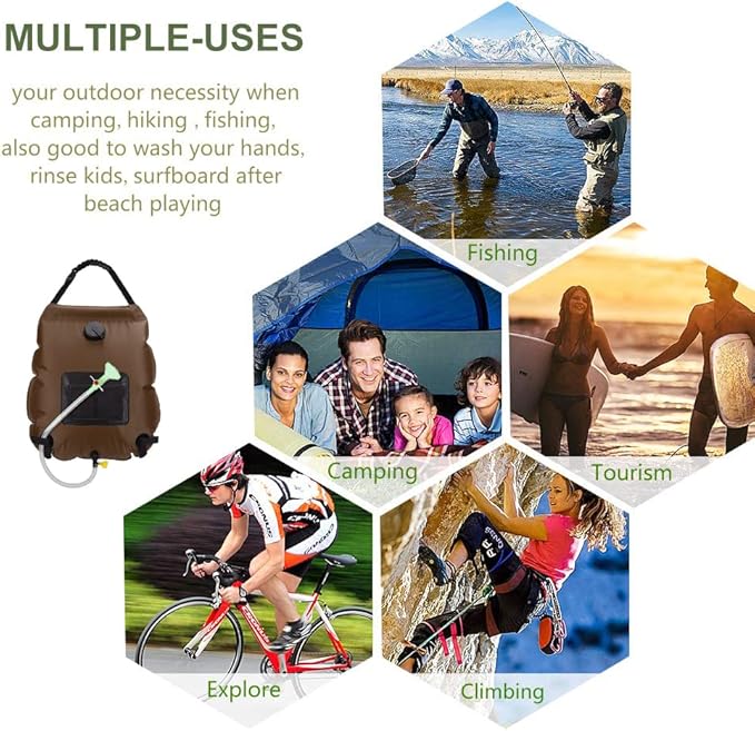 • 【High Water Capacity】This camping shower bag can carry up to 5 gallons/20L water for showering outdoor, let you enjoy a better and refreshing shower anywhere. In addition, our portable shower bag is so compact and lightweight that you can carry it in luggage, backpack or car trunk conveniently.