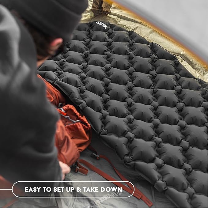 VAEDA Inflatable Sleeping Pad for Camping - Portable & Compact Camping Mat for Sleeping - Ultralight & Waterproof Backpacking Sleeping Mat for Hiking, Traveling & Outdoor Activities