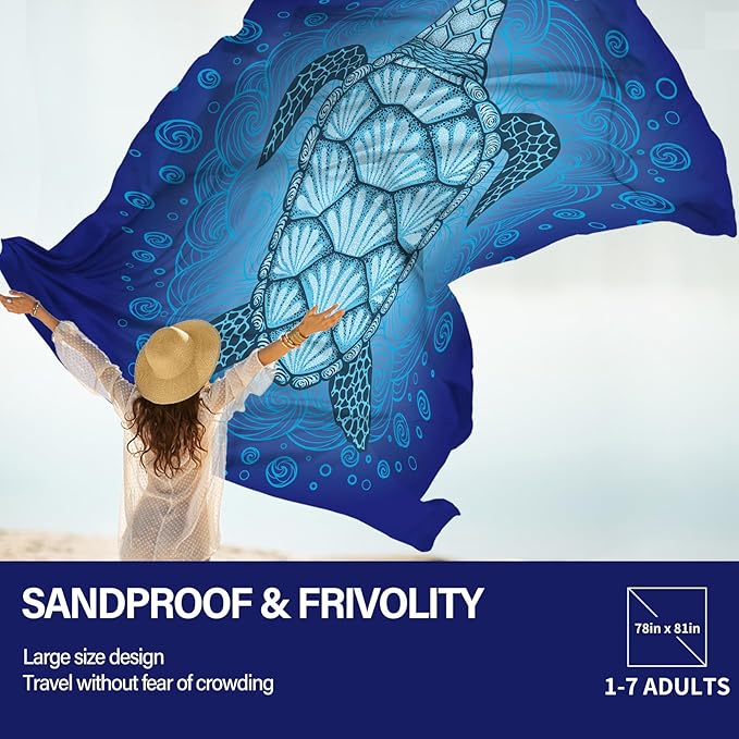 - Oversized Extra Large Beach Blanket :78" X 81"Size,1-7 Adults in total,Made by parachute fabric,More than 30% larger than other blankets,12 oz easy to carry!