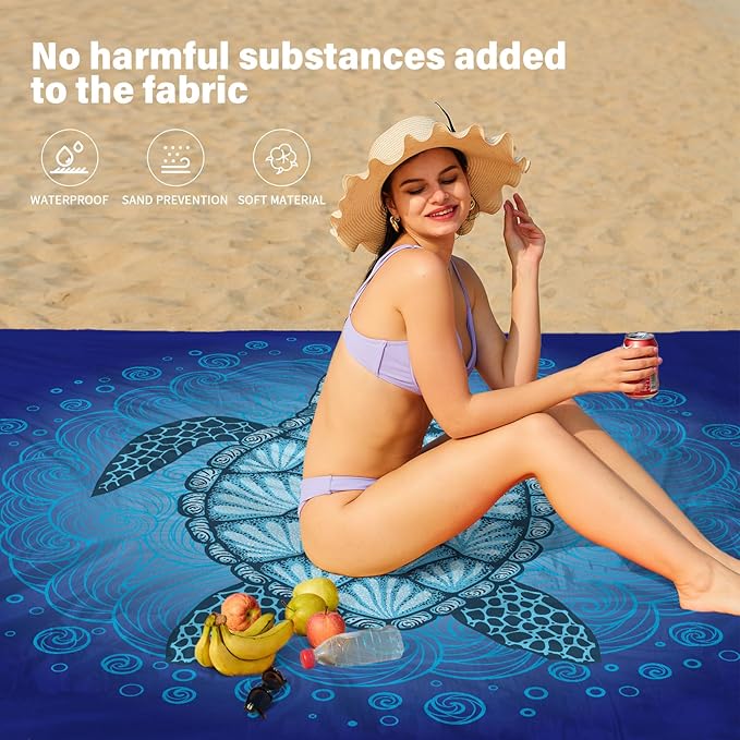 - Beach Blanket Waterproof Sandproof:Dry-Quick,Can also be used as a rain shed,sunshade,tent,toddler crawl,Emergency mat,Feel comfortable lying down.