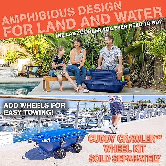 - AMPHIBIOUS FLOATING COOLER: Float, tow or anchor, the CUDDY is a floating cooler and dry storage vessel that also serves as a traditional cooler on land; Always have your drinks or gear within reach while on the water