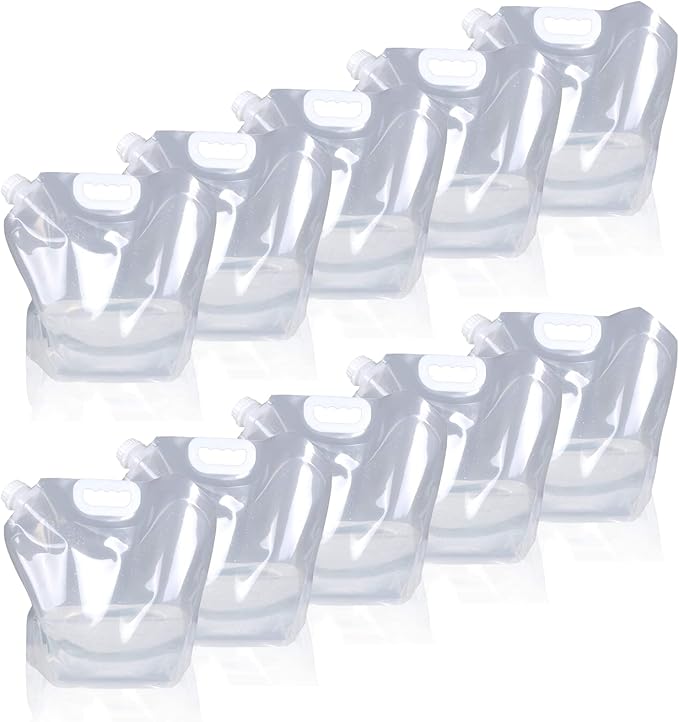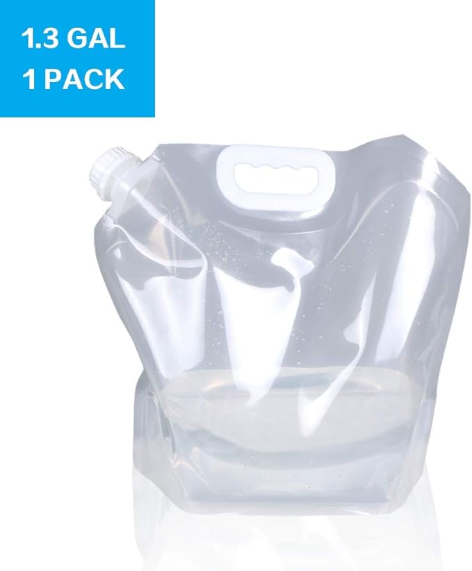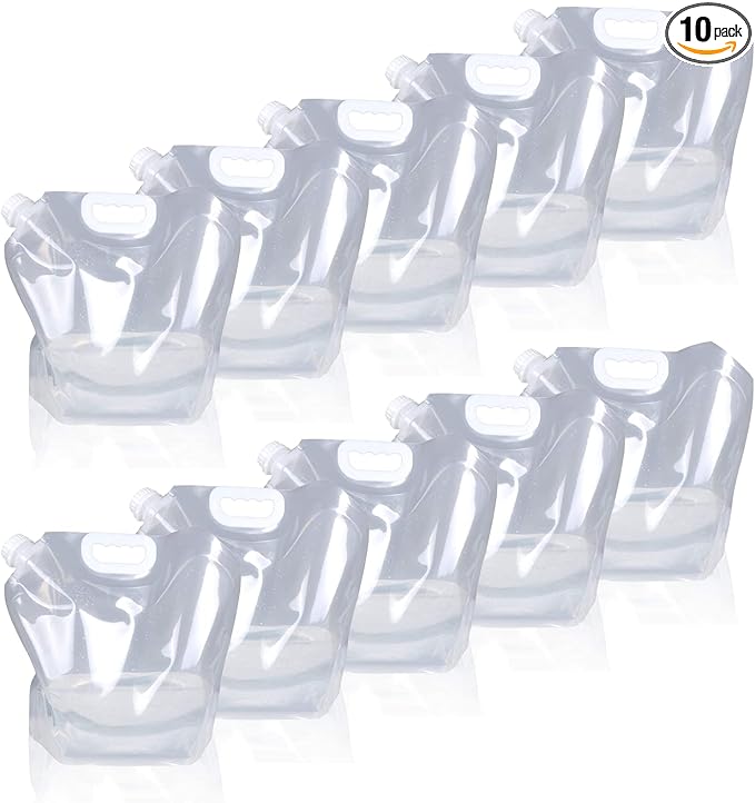 1.3 Gallon /2.6 Gallon Collapsible Water Container Bag, BPA Free Food Grade Clear Plastic Storage Jug for Sport Camping Riding Mountaineer,Freezable,Food Grade (1.3 Gal/5L-10-pack)
