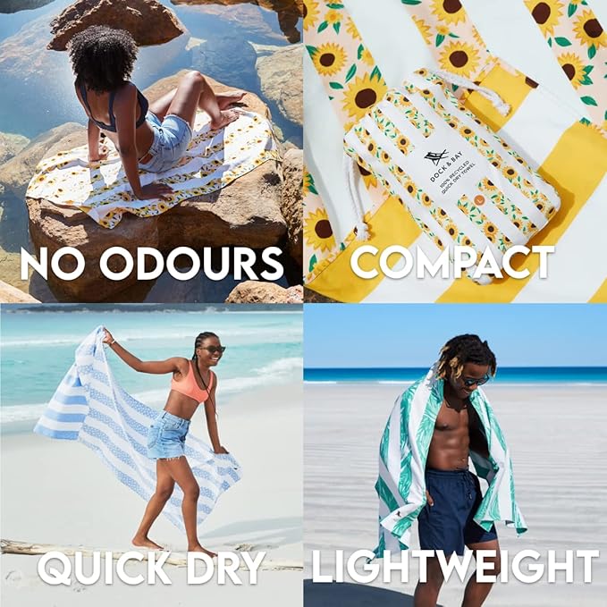Dock & Bay Quick Drying Towel - for Sports, Gym, Travel, Yoga, Camping, Swimming - Super Absorbent, Compact, Lightweight - 100% Recycled Materials - Includes Bag - Variable Sizes