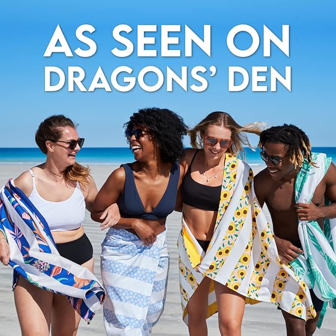 - SAND FREE BEACH TOWEL - The ultimate beach companion that leaves the sand at the beach for castles. The high-quality material means all you need to do is give it a shake and all sand will simply fall off. First seen on BBC's Dragons' Den