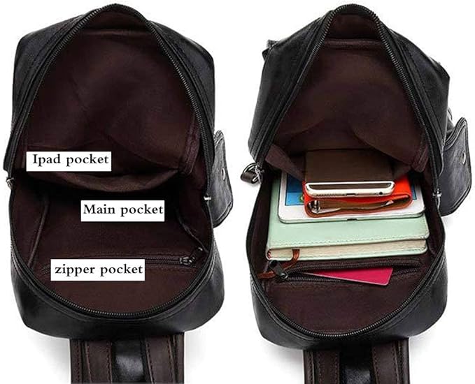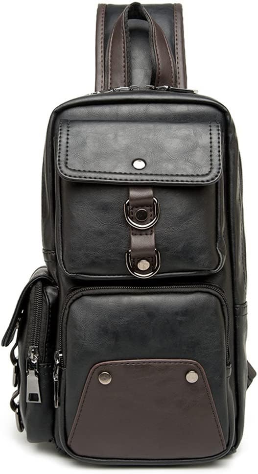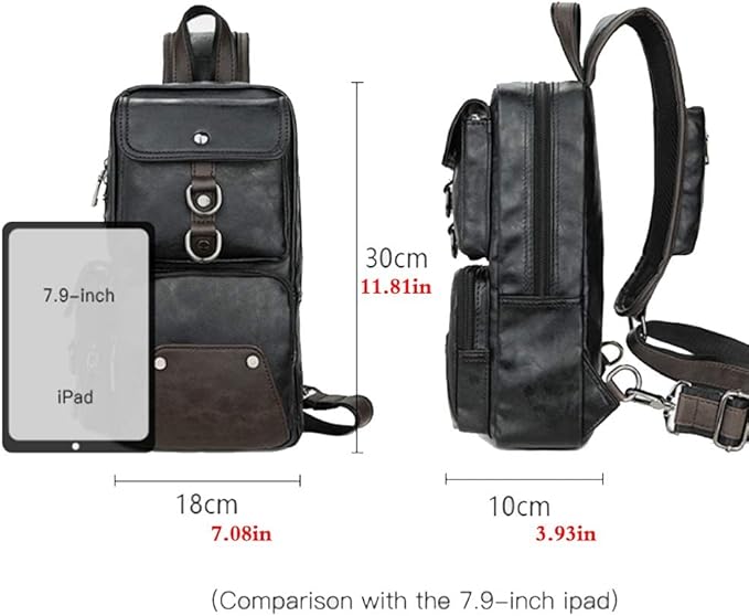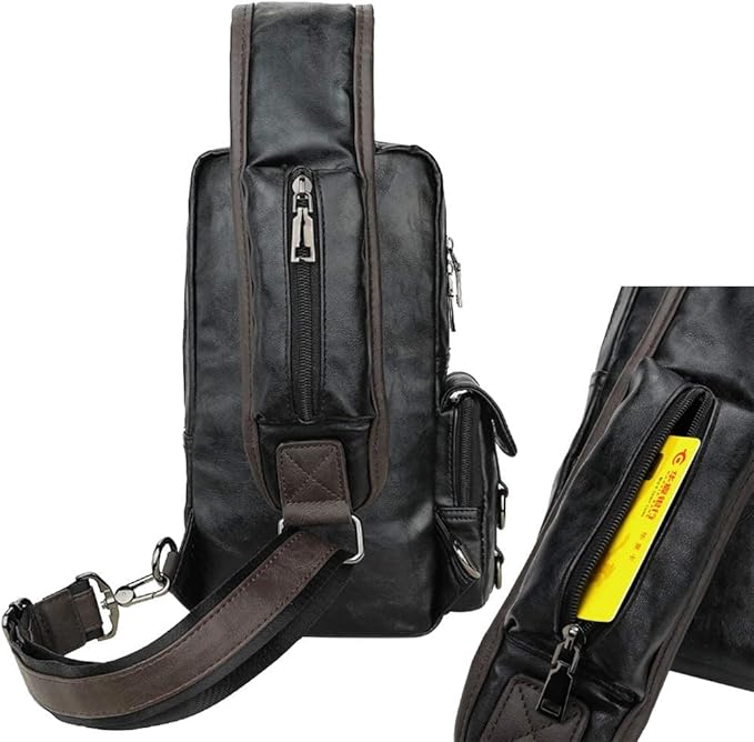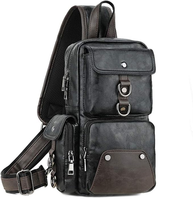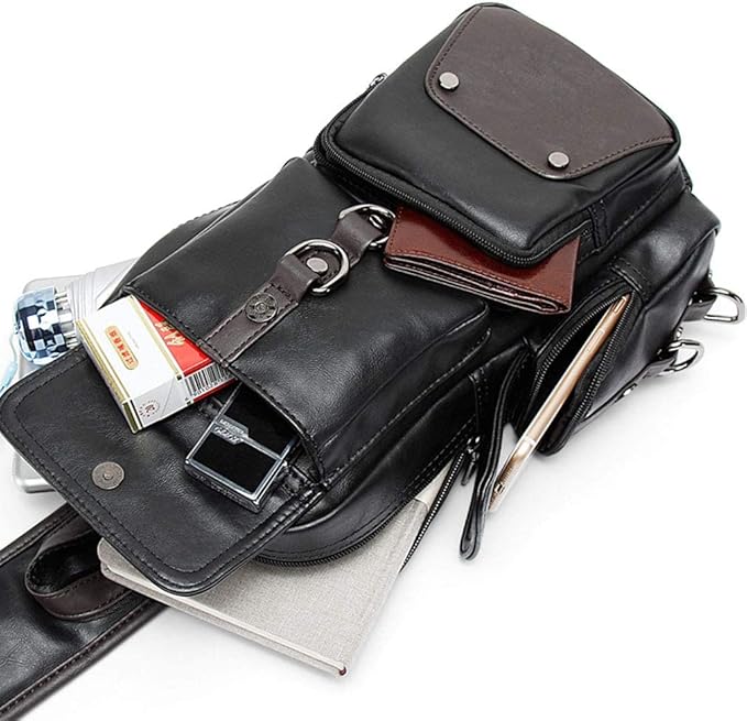 Leather Sling Bag Backpack for Men Women Cross Body Shoulder Chest Pack Outdoor Travel Camping Fishing Hunting Hiking Handbag Crossbody Daypack Black