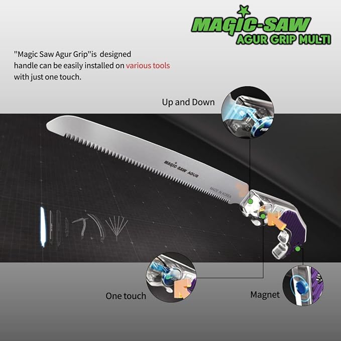 - 🐊Effortless Blade Attachment: The handle of the Magic Saw Agur Grip is thoughtfully designed for easy use, allowing you to effortlessly attach a variety of saw blades with just a single touch