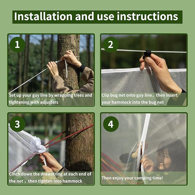 - Camping Gifts:Its well-ventilated design lets the breeze blow through so heat can escape.In this bug net, you won't get hot OR bothered! No matter the occasion, our hammock netting is a gadget that every adventurer needs