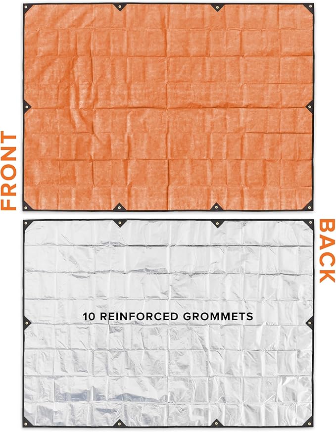 - LIGHTWEIGHT & PACKABLE: This reflective tarp weighs just over 4 pounds and packs down to 4” x 12” x 16" inside the included carry bag.