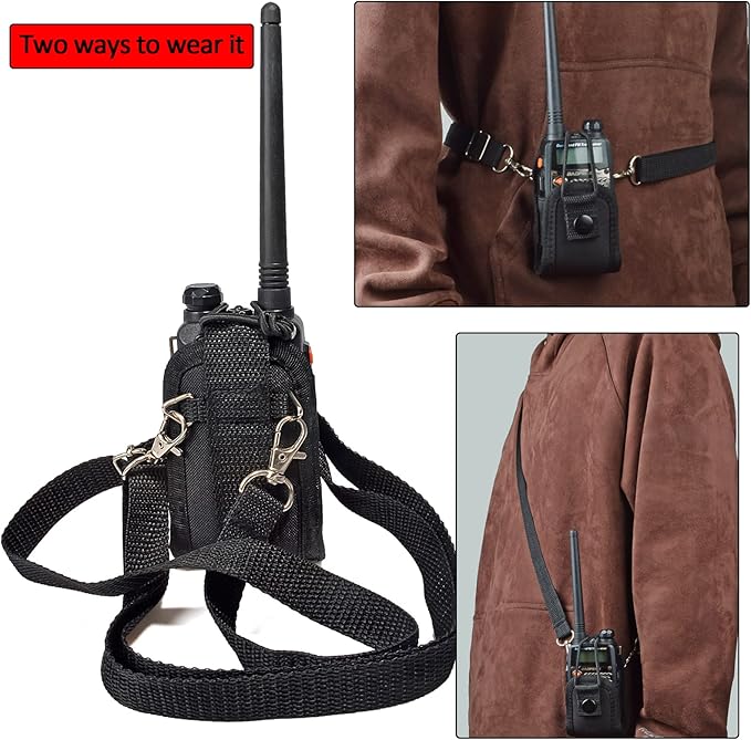 - Compatible with almost all two way radios on the market, for BaoFeng Radios UV-5R, BF-F8HP, UV-82HP, Motorola, Kenwood, Icom etc.The Radio Pouch adjustable nylon strap can also be worn with a belt or the shoulder strap.